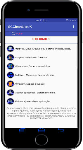 SGClean. Desenvolvido para Andróide de dispositivos a partir 4.1 de agora em diante.