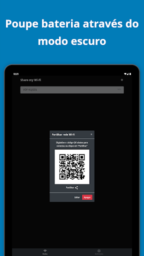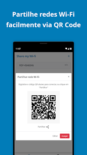 Share My Wi-Fi permite-lhe adicionar e partilhar redes Wi-Fi através de código QR ou serviços de mensagens e/ou redes sociais.