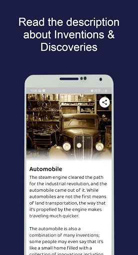 Invenções e Descobertas App é sobre as 50 principais invenções e descobertas que mudaram o mundo.Não se pode imaginar sua vida hoje sem essas invenções e descobertas.Neste aplicativo você pode ler sobre invenções e descobertas e pode compartilhar os fatos sobre essas invenções e descobertas para qualquer pessoa através de qualquer plataforma.