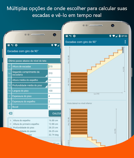 A calculadora de escadas mais completa do mercado para dispositivos móveis.
