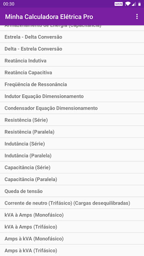 Minha Calculadora Elétrica Pro contém os seguintes 45 Calculadoras: