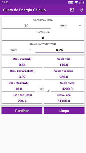 • Valores e resultados calculados podem ser compartilhados com mídias sociais, e-mails, mensagens e outros aplicativos de compartilhamento.