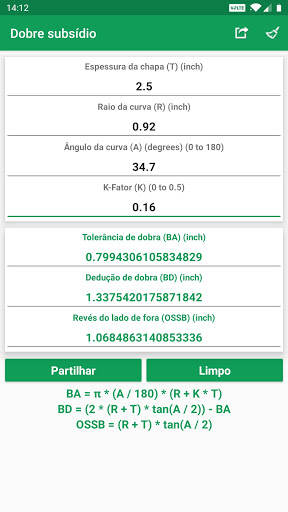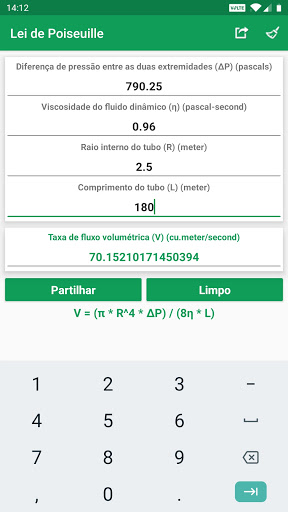 Valores e resultados calculados podem ser compartilhados com mídias sociais, e-mails, mensagens e outros aplicativos de compartilhamento.