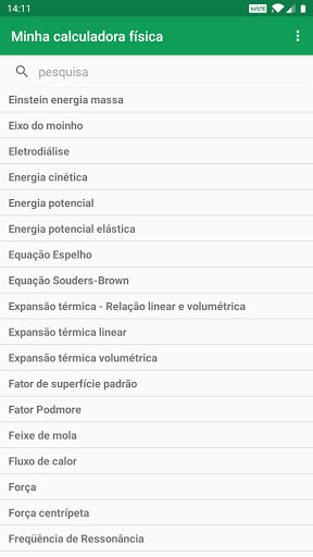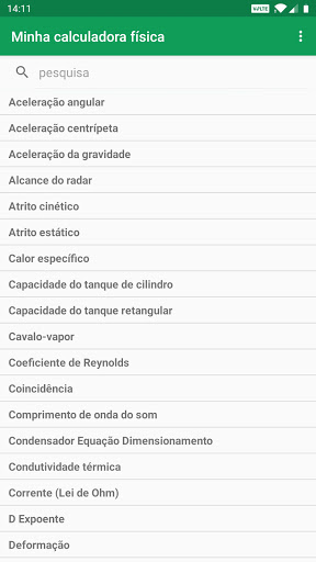 Minha calculadora física contém 134 calculadoras, que pode rapidamente e facilmente calcular diferentes parâmetros físicos e de engenharia. Valores e resultados calculados podem ser compartilhados com mídias sociais, e-mails, mensagens e outros aplicativos de compartilhamento. Cálculos e conversões automáticas e precisas com cada unidade e valor muda.