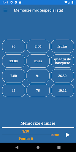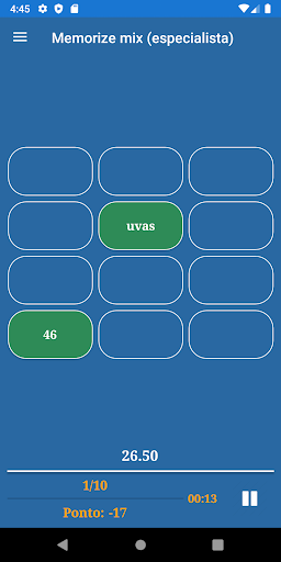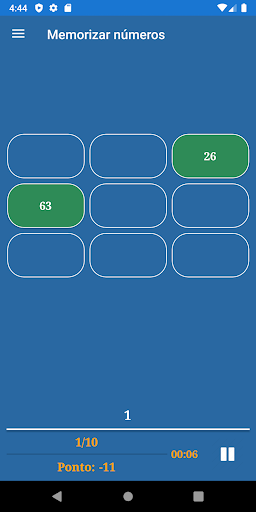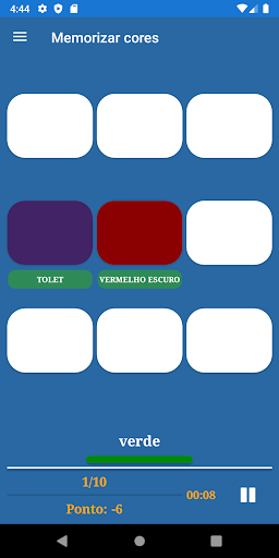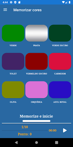 O aplicativo inclui os seguintes jogos de memória: