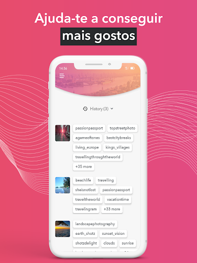 Oferece-te as melhores hashtags para as fotos do teu Instagram™. Vamos conseguir mais seguidores e gostos juntos!