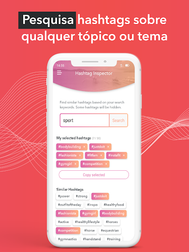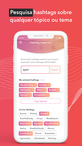 ✔ O Hashtag Inspector permite-te pesquisar hashtags semelhantes. Recomenda-te hashtags com base na tua seleção em qualquer tópico ou tema que queiras.