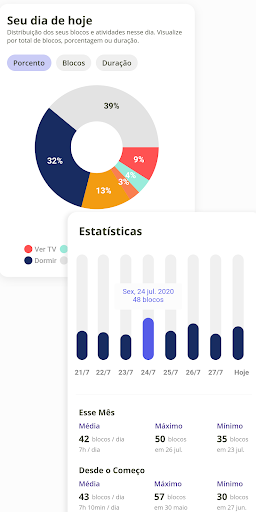 Monitore o tempo com muito mais eficiência, criando uma rotina com hábitos diários que se adaptem ao seu estilo de vida (como atividade física).