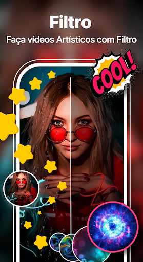 * Personalize seus vídeos com efeitos emocionantes e efeitos de transição no aplicativo.