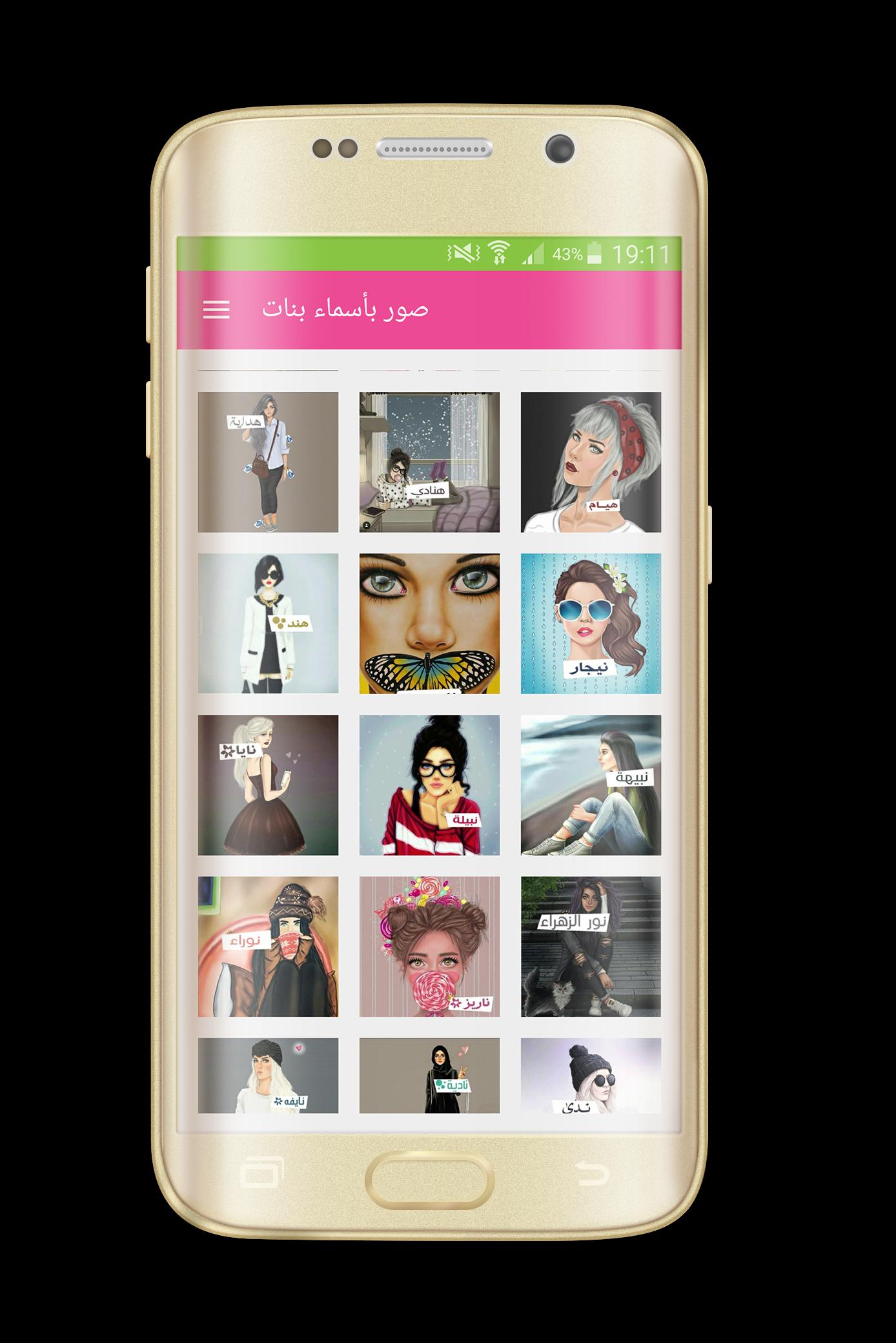 صور بأسماء بنات عبارة عن تطبيق سهل الاستخدام تجد فيه مجموعة من الصور الكرتونية مكتوبة عليها مجموعة من الاسماء