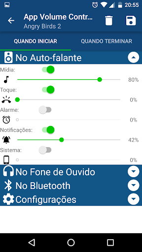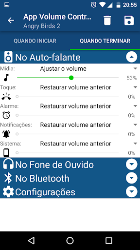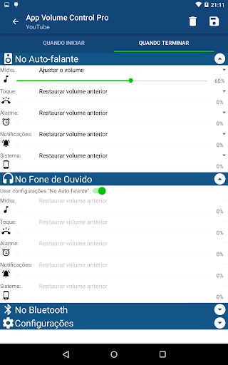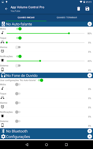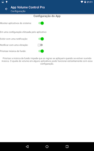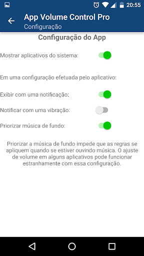 Quando ativado, o aplicativo cuida de mudar o volume do aplicativo assim que ele for aberto.