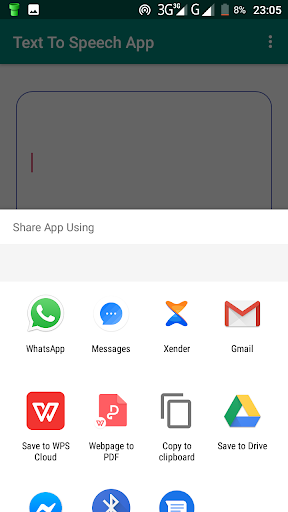 O aplicativo é para converter texto para a fala.Pode converter texto para a fala em qualquer idioma.Você pode colar artigos ou mensagens longas no campo de texto e ouvir com facilidade.