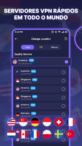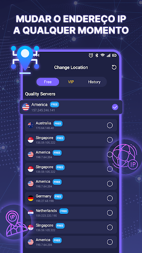 O aplicativo permite que você altere seu endereço IP rapidamente e facilmente, fornecendo o máximo nível de anonimato online. Isso oferece maior proteção on-line, pois torna mais difícil para hackers e outros atores mal-intencionados rastrear sua atividade na Internet.