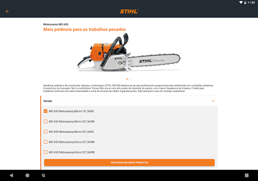 - Minha STIHL: por pesquisa ou por catálogo de produtos