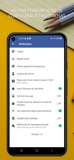 Para alterar a senha de aplicativos, abra o App Lock, clique no menu Configurações e escolha “Alterar senha” e defina a nova senha para o App Lock.