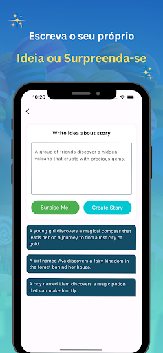 Inspiração Sem Fim: O App Escritor de Histórias AI atua como sua musa virtual, fornecendo uma fonte inesgotável de inspiração.