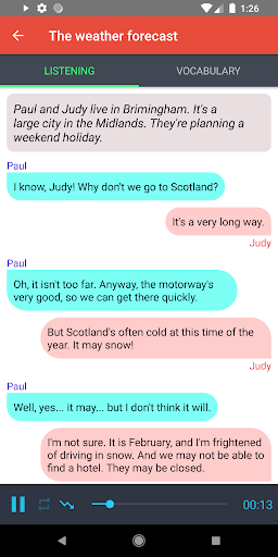 Otimizar a escuta em inglês é um aplicativo gratuito que permite melhorar suas habilidades de escuta em inglês de maneira rápida e eficaz, praticando todos os dias.Também apoiamos o modo offline para que você possa aprender inglês a qualquer momento e em qualquer lugar que desejar.Os favoritos do vocabulário também estão prontos para permitir que os usuários trabalhem para entender novas palavras de vocabulário que eles podem não conhecer em sua leitura e escuta.