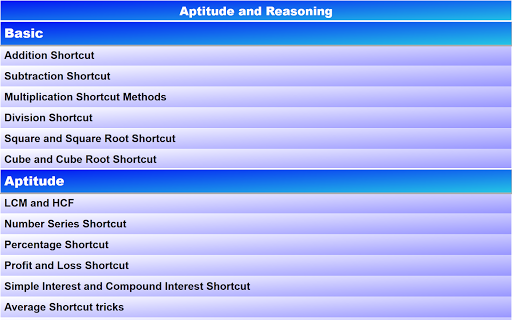 Apresentando aptidão e raciocínio lógico App para a preparação de aptidão quantitativa, raciocínio lógico, raciocínio geral e raciocínio verbal para fins de exame e entrevista.