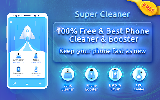 Super Cleaner is a free, practical, efficient and versatile mobile phone cleaning application. It has the functions of clean junk files, Speed up your phone, Cool down CPU temperature, Optimize battery performance.