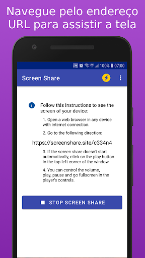 - Compartilhamento de tela com outros dispositivos móveis (abra o URL que o aplicativo fornece em outro dispositivo)