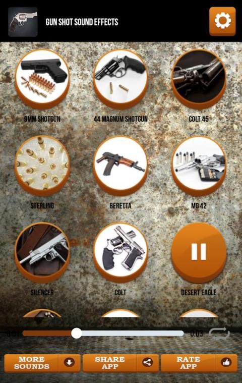 * Easy to use UI, Gun Shot Sound Effects App works in landscape and portrait mode, optimized for all tablets and smartphones.