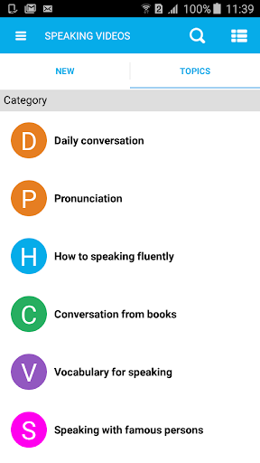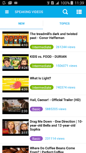 Este é um aplicativo para aprender inglês por vídeos, muitas listas de reprodução que são classificadas ordenadas para tópicos comuns em inglês como: