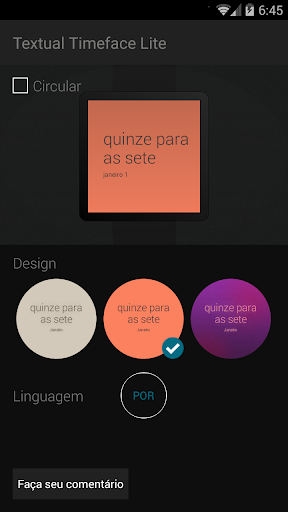 Ao invés dos clássicos ponteiros e números, este mostrador usa uma representação baseada em texto. Se você consulta o relógio ele mostra «quinze para as sete» ao invés de «6:45».