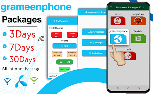 ⦁ Grameenphone 3 pacotes de dia ⦁ Grameenphone 7 dias pacotes