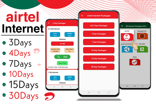 ⦁ Pacotes de 4 dias de Airtel BR> ⦁ Pacotes de 10 dias Airtel
