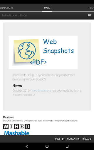 * Os instantâneos criados por este aplicativo estão em uma torre única ou formato de banner vertical que se adapta a uma web inteira página em um documento PDF não padrão. Eles são exatos reprodutos de pixel da página que você vê no navegador da Web e faz ótimas provas para web designers.