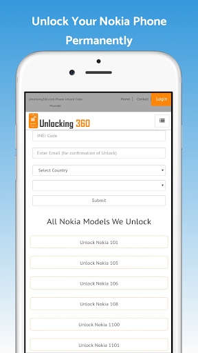 Com o nosso aplicativo de telefone Nokia Unlocking360.com, você será capaz de desbloquear seu celular Nokia pelo código IMEI. Este método é rápido e seguro.
