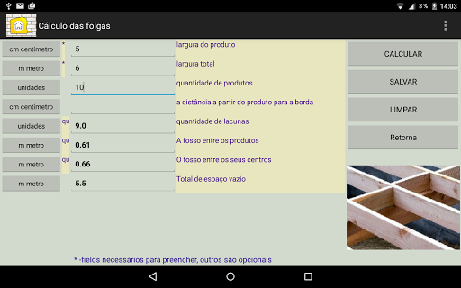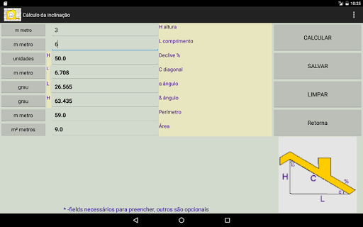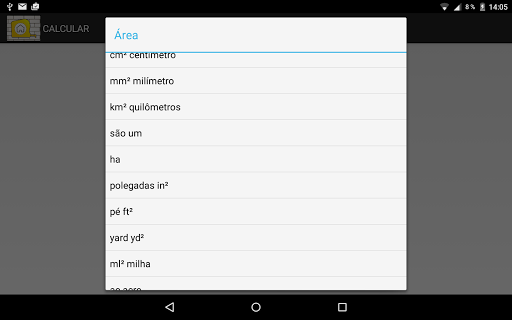 A aplicação é definida pela mudança dinâmica das unidades. Você pode preencher uma unidades de measurments e obter os resultados em mais unidades selecionadas. Existem cerca de 300 unidades possíveis. Junto com os cálculos mais complexos você vai encontrar um desenho..