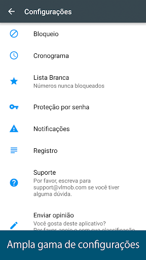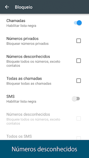 Bloqueador de chamadas e também um eficaz bloqueador de SMS. Bloqueia chamadas indesejadas e mensagens de spam. Você pode adicionar qualquer número à lista negra ou ativar uma das opções de bloqueio: "Números privados", "Números desconhecidos" ou "Todas as chamadas".