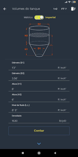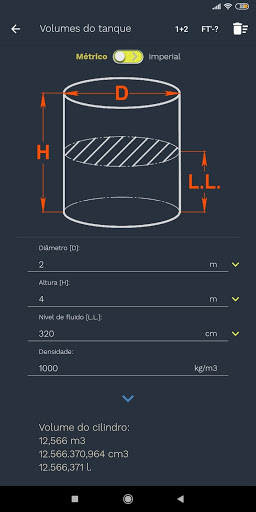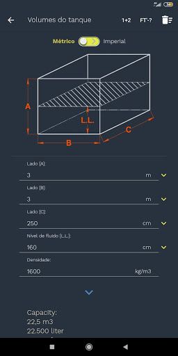 Uma interface simples e intuitiva permitirá calcular facilmente os volumes de tanques domésticos, de construção ou de produção dos seguintes tipos - cilíndrico, cônico, cúbico e piramidal.