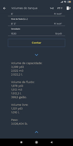 Conte em alguns cliques o volume do tanque em que você está interessado, bem como o peso do líquido nele.
