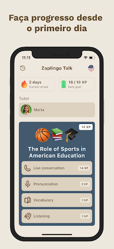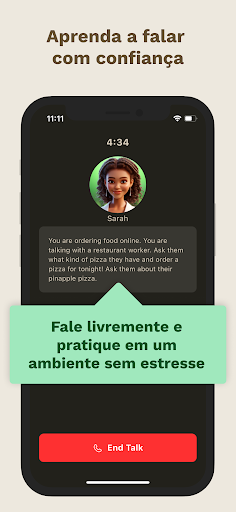 Zaplingo Talk oferece chamadas telefônicas sobre uma variedade de tópicos interessantes, reais e divertidos. Desde pedir comida em um restaurante, discutir planos de viagem, debater filmes ou apenas fazer um bate-papo informal - Zaplingo Talk te prepara para conversas do mundo real, enquanto se ajusta ao seu nível e ritmo de aprendizado. Nossos tutores de IA são projetados para simular conversas naturais, permitindo que você experimente as nuances de diferentes sotaques e dialetos.