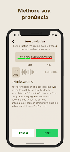 Melhore sua pronúncia usando a tecnologia de inteligência artificial mais avançada.