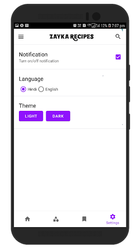 * Nosso aplicativo de receita tem dois temas - luz e escuridão.