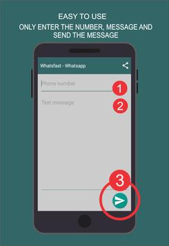 Whatsfast - Whatsapp is easy to use just enter the number, message and ready send the message by Whatsapp without having to register the number as a WhatsApp contact, WhatsApp can also be used to send messages by WhatsApp to your same WhatsApp number in that way with the help of Whatsfast you can save important notes and documents thanks to Whatsfast - Whatsapp