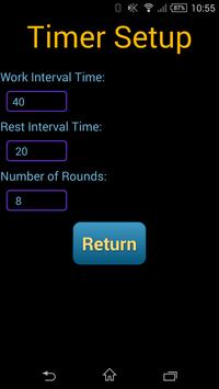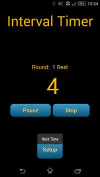 Interval timer for High Intensity Interval Training. Go into setup to set the work interval length, rest interval length and number of rounds. Press start to begin your workout. The timer will beep to signal the end of each interval.