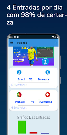 O APP conta com 3 palpites diários com +92% de certeza de acertos + ENTRADA VIP.