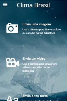 O Clima Brasil Previsão é um inovador aplicativo de Previsão Temporal do Brasil, onde você pode ter detalhes do clima durante toda a semana, e ver também as condições no resto do mundo. Além disso, somos o único aplicativo de previsão climática que conta com uma rede social onde pode enviar uma imagem ou vídeo do clima de onde você se encontra e compartilhar com os usuários do app, podendo conversar com chat.