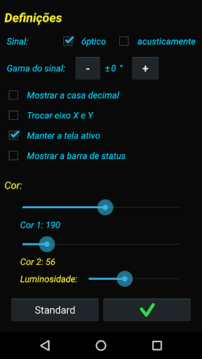 * Sinal optico e acusticamente se o ângulo é igual a 0°