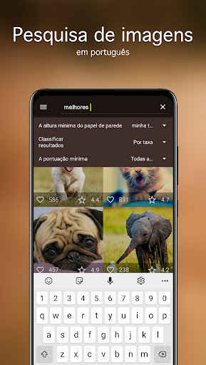 Tendo selecionado a imagem com animais fofos, pode baixa-la, adiciona-la aos favoritos ou imediatamente instalar como plano de fundo no celular ou no tablet.