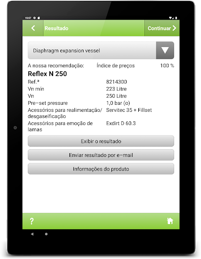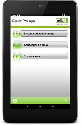 Transforme o seu Smartphone num Assistente! A partir de agora, pode responder a perguntas sobre a manutenção da pressão em sistemas de aquecimento, sistemas solares e sistemas de água quente num piscar de olhos – até na sala de caldeiras mais escura. Com a aplicação Reflex Pro, é possível recalcular reservatórios de expansão existentes, definir a pressão de admissão e de enchimento e determinar medidas relativamente à dureza da água na água de enchimento e de reposição conforme a norma VDI 2035. Ideal para o registo do projeto e para elaborar diretamente no local um primeiro aconselhamento e cálculo com uma impressionante precisão nos detalhes.