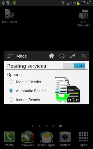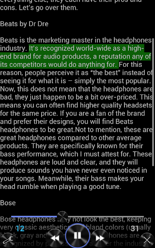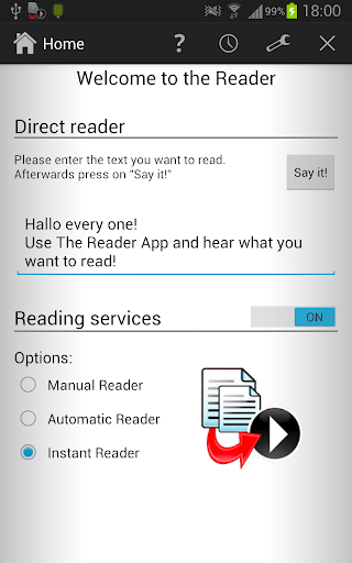 O aplicativo do leitor pode ler qualquer texto que você é capaz de marcar no seu telefone Android (toque longo no texto)!