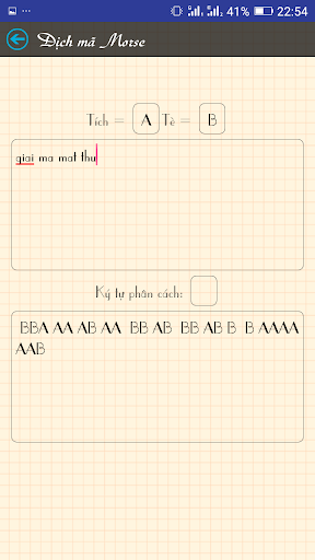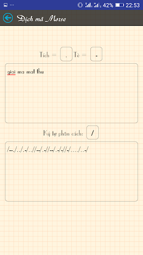 - Translate morse words into text and vice versa, dot (.) dash (-) can be customized into any character