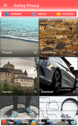 Para exibir álbuns, uma lista global de todas as fotos ou ambos ★ tem recursos de pesquisa e filtros para encontrar Qualquer foto🔍