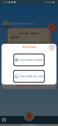 Neste aplicativo, a Galeria de Formulários de Extração de Imagens ou sua câmera para enviar uma mensagem para editar a frente amárica