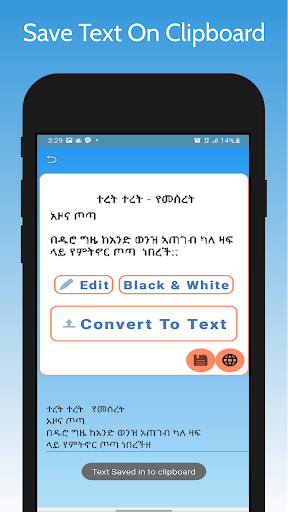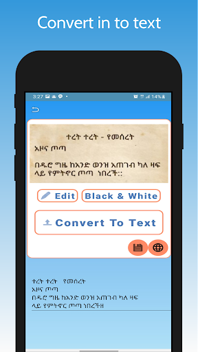 Outros recursos do nosso aplicativo OCR amárico incluem interface fácil de usar, configurações personalizáveis para reconhecimento de linguagem e fontes e compatibilidade com múltiplosDispositivos e plataformas.Reconheça o texto em uma imagem de linguagem amárica ou documento digitalizado.O sistema analisa a imagem, identifica os caracteres e os converte em texto legível por máquina que pode ser editado, pesquisado ou armazenado em um formato digital.